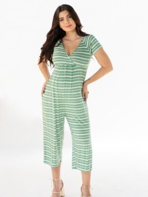 Macacão Gestante Amamentação Pantacourt Manga Raglan Verde