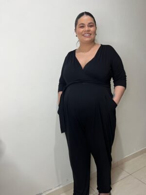 Macacão Gestante Manga 3/4 Preto