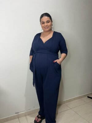 Macacão Gestante Manga 3/4 Azul Marinho
